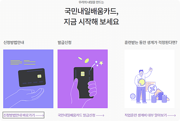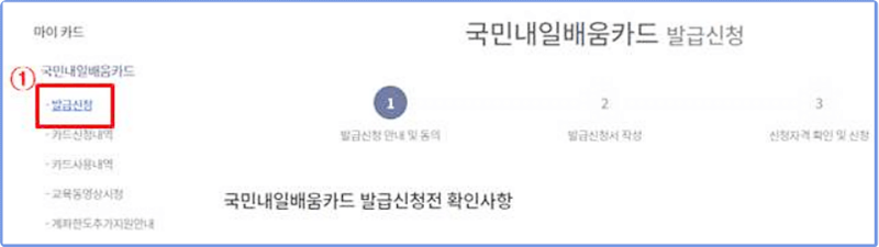 - 홈 > 나의 정보 > 나의 카드 > 국민내일배움카드 > 발급신청