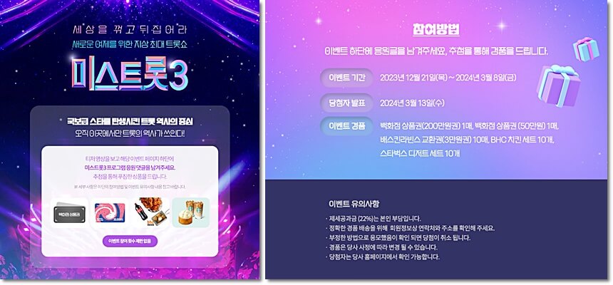 미스트롯 시즌 3 기념 이벤트