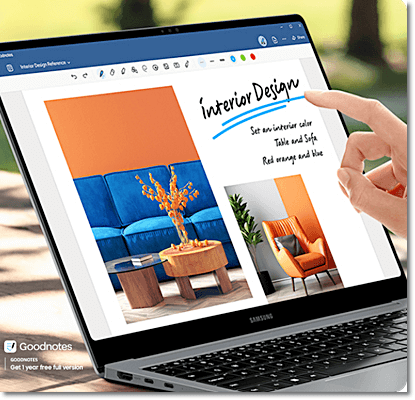 · 360 회전 힌지를 활용한 스탠드 모드와 태블릿 모드를 활용해 메모와 그림 그리기에 편리한 사용성 제공