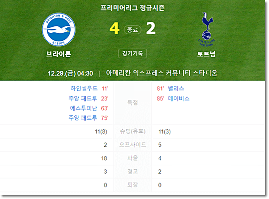 토트넘 vs 브라이튼 경기 결과