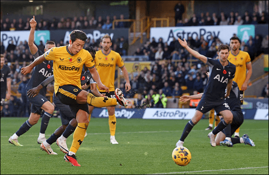 토트넘 vs 울버햄스턴 황희찬 슈팅 장면