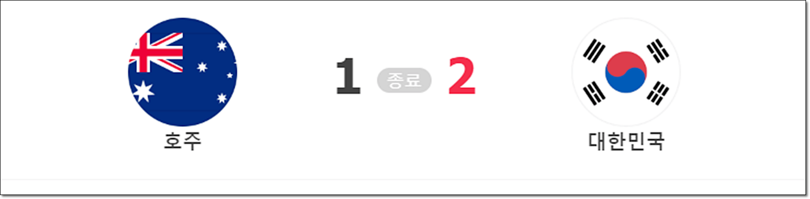 - 대한민국 : 호주 2 : 1로 대한민국 승리로 4강 진출