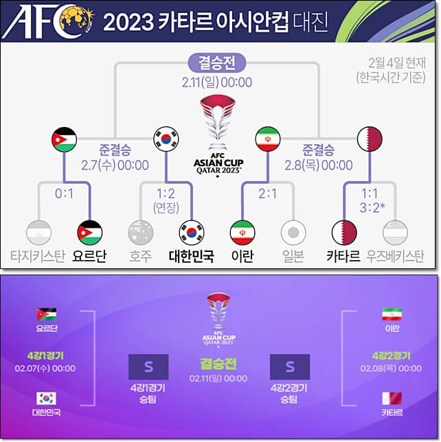 | 2023 카타르 아시안컵 16강 8강 준결승 결승 경기 일정 (1) | 2024.01.30 |