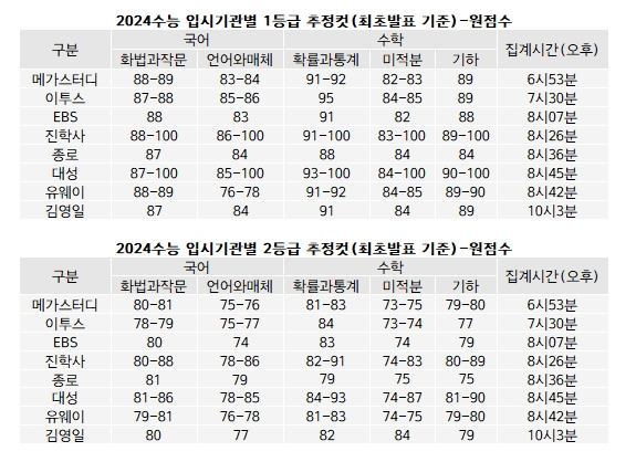 2024학년도 수능시험 등급컷