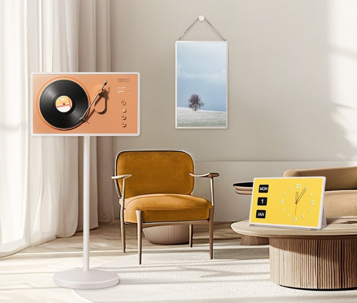 | 활용 공간 | 벽걸이형 설치에 적합한 거실·작은 전시공간 | 침대, 주방, 야외 테라스 어디서나 활용 가능 |