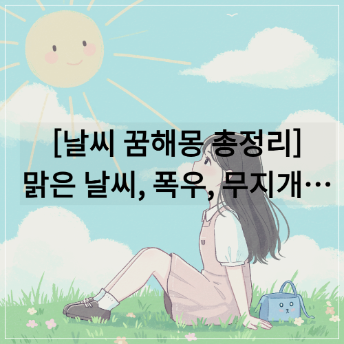 🌦️ 맑은 날씨, 폭우, 무지개… 당신의 꿈속 날씨는 무엇이었나요?날씨는 우리의 감정과 삶의 흐름을 상징하는 중요한 요소입니다.오늘은 날씨와 관련된 꿈이 의미하는 바를 구체적으로 해석해드립니다.    🌤️ 날씨와 관련된 꿈의 의미 ● 꿈은 내면의 거울입니다우리가 꾸는 꿈은 단순한 상상이 아니라, 무의식이 보내는 깊은 메시지입니다. 특히 날씨는 감정 상태, 주변 환경, 미래에 대한 예감을 상징하는 꿈속 코드입니다. 지금 꾸는 날씨 꿈을 통해 당신의 현재 심리상태와 다가올 운세를 미리 알아보세요. ● 날씨와 관련된 꿈의 의미날씨가 등장하는 꿈은 주로 감정의 상태나 인생의 흐름을 나타냅니다. 맑은 하늘은 긍정적인 에너지와 명확한 방향성을, 비나 폭풍은 감정적인 변화나 문제를 암시합니다. 꿈속 날씨는 변화,..