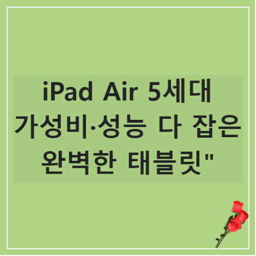 얇고 가벼운 디자인, 강력한 성능, 그리고 애플만의 감성까지 담은 iPad Air는 학생부터 직장인, 크리에이터까지 모두에게 사랑받는 인기 제품입니다. 특히 5세대 iPad Air는 M1 칩셋 탑재로 기존 대비 성능이 크게 향상되어, 가성비와 퍼포먼스를 동시에 만족시키고 있습니다. 이번 포스팅에서는 iPad Air의 주요 사양, 장점, 가격 및 최저가 구매가이드까지 한 번에 정리해드립니다. 🧾 iPad Air 5세대 제품 사양 모델명: iPad Air 5세대 칩셋: Apple M1 칩디스플레이: 10.9인치 Liquid Retina 디스플레이해상도: 2360 x 1640RAM/저장공간: 8GB RAM / 64GB 또는 256GB 저장전면 카메라: 12MP 울트라 와이드 (Center Stage ..